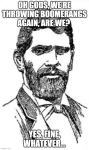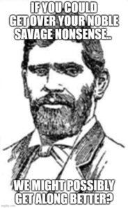 It was very kind of Allen & Unwin to give me my first break as an actual author. I hope I did not disappoint, but I do know a lot of people bought it, and (with any luck) read it. That title ought to be some sort of clue that I have no interest in mythologising any of our supposed national icons. I do love and admire my native land. There’s a lot to like. So please: no black arm-bands. But no living in denial either. There is not the slightest point in pretending we were peaceful occupiers. We were invaders like every other successful tribe on earth. The central issue for white folks agonizing about our history of dispossessing the natives is the feeling If Only I Had Been There! This emotional response is remarkably adjacent is a long succession of movies and stories about how a bunch of oppressed natives find salvation because a white man comes to their rescue.