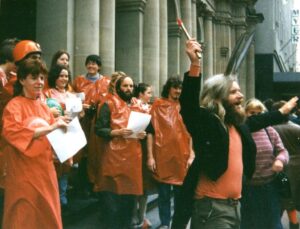 I had no wish, then or now, to indulge myself with rampant Schadenfreude. (Though I did whisper Wie Schade! to myself.) But at the time Australians were stunned, angry and afraid. A job for the wizard? Definitely. So I organized a demonstration outside Melbourne’s Stock Exchange. We flew kites, rode unicycles, and sang choral harmonies, and I informed the passers-by that the sun was still shining, the world had not come to an end, and any money which had suddenly evaporated wasn’t real anyway. I presented a kite to the Chairman and we all had a Grand Day Out. I like to think that this was a musical intervention which brightened the place up a bit, and lifted, if only somewhat, the general sense of doom.