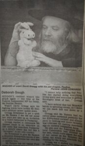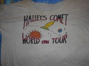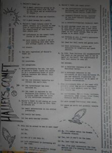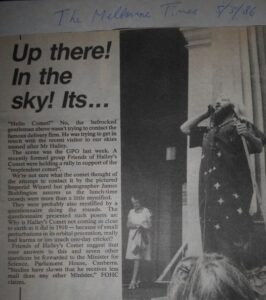 I was rather proud of my campaign to welcome Halley’s Comet to our solar system: the culmination of which was a city centre demonstration during which Murgatroyd the Prophet waved a giant comet-on-a-stick which he had built, and walked miles carrying. I spoke to the Comet on my Hotline To Heaven: