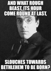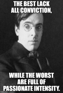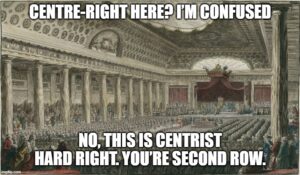 WB Yeats, sometime poet and member of the Seanad Éireann, made this prescient lament in 1919. He foresaw a time (between the two World Wars) all too much like our own. Moderation has failed! It is time for extremism! When he wasn’t moaning about his unrequited love for Maud Gonne, Yeats was a decent prophet on his own terms. His rough beast could have been Hitler, Stalin or both. These are hard times, and extreme measures are required! We need a Strong Man to lead us to safety! And so on, and on, and on. And yet… the evidence does suggest otherwise. Moderation is out of fashion now. This is because as a civilisation we have lost our marbles. Yet sensible moderation works in a way that extremism doesn’t. Part of the problem is that for unfathomable reasons far too many people still behave as though the terms Left and Right still mean something. Nobody should care in these latter times who sat where in the 1789 National Assembly. This is where the terms Left and Right originated.