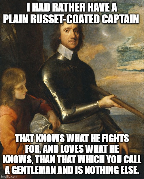 The Civil War was fought largely by men of honour on both sides. Both sides did their best to lose it. Staff-work was virtually non-existent. Charles insisted on being the supreme commander, and crippled his armies by insisting on garrisoning towns and cities everywhere. The Parliamentary armies wavered and dithered. But a new force was arising in East Anglia: ever the heartland of Puritan sentiment.