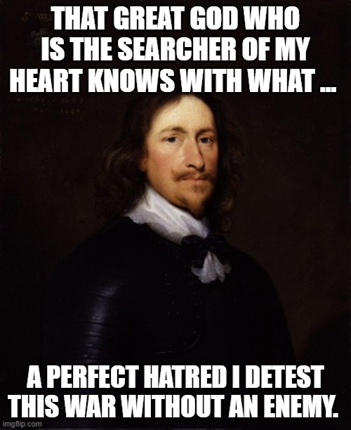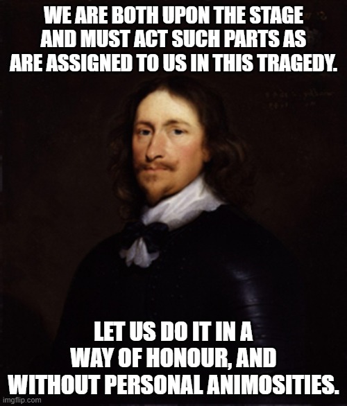 Matters went from bad to worse. Charles lost his head figuratively, and in the end literally. The English Civil War was largely fought by armies little used to war, save for a cadre of veterans from the German wars. In Germany, wholesale slaughter and mass starvation were the rule. In England it was very different. This is from a letter written by Sir William Waller (Roundhead) to his friend Sir Ralph Hopton (Cavalier):