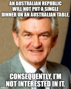 Republicans on these fatal shores seem to talk largely in empty slogans. We want an Australian as Head of State! That’s a common trope. Last time I looked, Her Excellency looked pretty Australian to me. In Canada, the G-G is de jure Head of State except when the Sovereign is actually present. In Australia and New Zealand this is also the case de facto. We want to be fully independent! Again, that happened in 1931, with the Statute of Westminster. Get with the script, people. 1931 is almost a century ago. We know republicans are terribly slow on the uptake, but this is getting ridiculous.