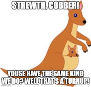 There is also this business of bowing and kneeling. Some find it demeaning. I don’t. But here’s the thing. Everyone bows to somebody. Monarchists only bow to the Crown and Its Representatives. Anyone else? Go stick it in your ear. The plutocracy would have us remove our hats and incline our heads in awe as they pass us by. They would have us believe that they are godlike beings, and we are not worthy even to touch their celestial garments. We should be grateful for the shadow of their passing upon our miserable hovels as they process in state in their limousines. We should be awestruck in the presence of money and power. We must grovel and abase ourselves because they are the Oligarchs ordained by Mammon to rule over us. That is what they want, and expect. And to them all we say this. We are Aussies. Anyone coming the raw prawn on us may expect to be told to go stick their head up a dead bear’s bottom. Just the Crown, and representatives thereof. Anyone else? Bugger off. We do not kneel to you.
