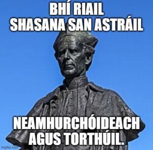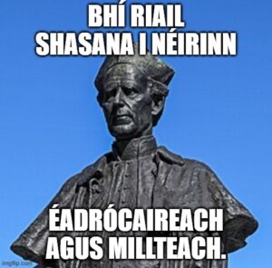 Ireland? Ireland has its own chapter elsewhere in this website. It is a complex matter with many ramifications. Many Irish-identifying folks are allergic to the bit of Union Jack in the corner of our flag. The question of our British heritage has its own chapters. Of course it does. It’s a long tale, but well worth the telling. And there will be cartoons and general light relief. Because. For the Irish among us, I offer this: