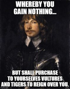 So who actually does want a republic? Socialists, communists, fashionable thinkers and those who don’t generally think things through. Most of them are decent enough human beings; but none of them has come up with any good reasons for having one. And of course there are the New Puritans. I have written elsewhere that we seem to be re-living the 17th century at present. In an age of iconoclasm there’s always somebody who wants to smash statues, destroy images, and deface ancient monuments. If you’re that sort of person, please read up on that dreadful time: