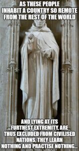 Some nations have had their polities seriously damaged by Christian missionaries. Back in the so-called Dark Ages, things were far otherwise. Britain and Scandinavia were improved enormously by the new religion. But Ireland! Conversion wrought a wonder of change in the Emerald Isle. The role of Irish monks in preserving Europe’s heritage was studiously ignored until recently. It took Kenneth Clark (later Lord Clark of Civilization) to tell the world that without sturdy, barefoot Irish monks with their leather bags of immortal manuscripts we would never have known about the Classical world and its Christian underpinnings. If you’d prefer an Irish author, Thomas Cahill has a fine book entitled How the Irish Saved Civilization.